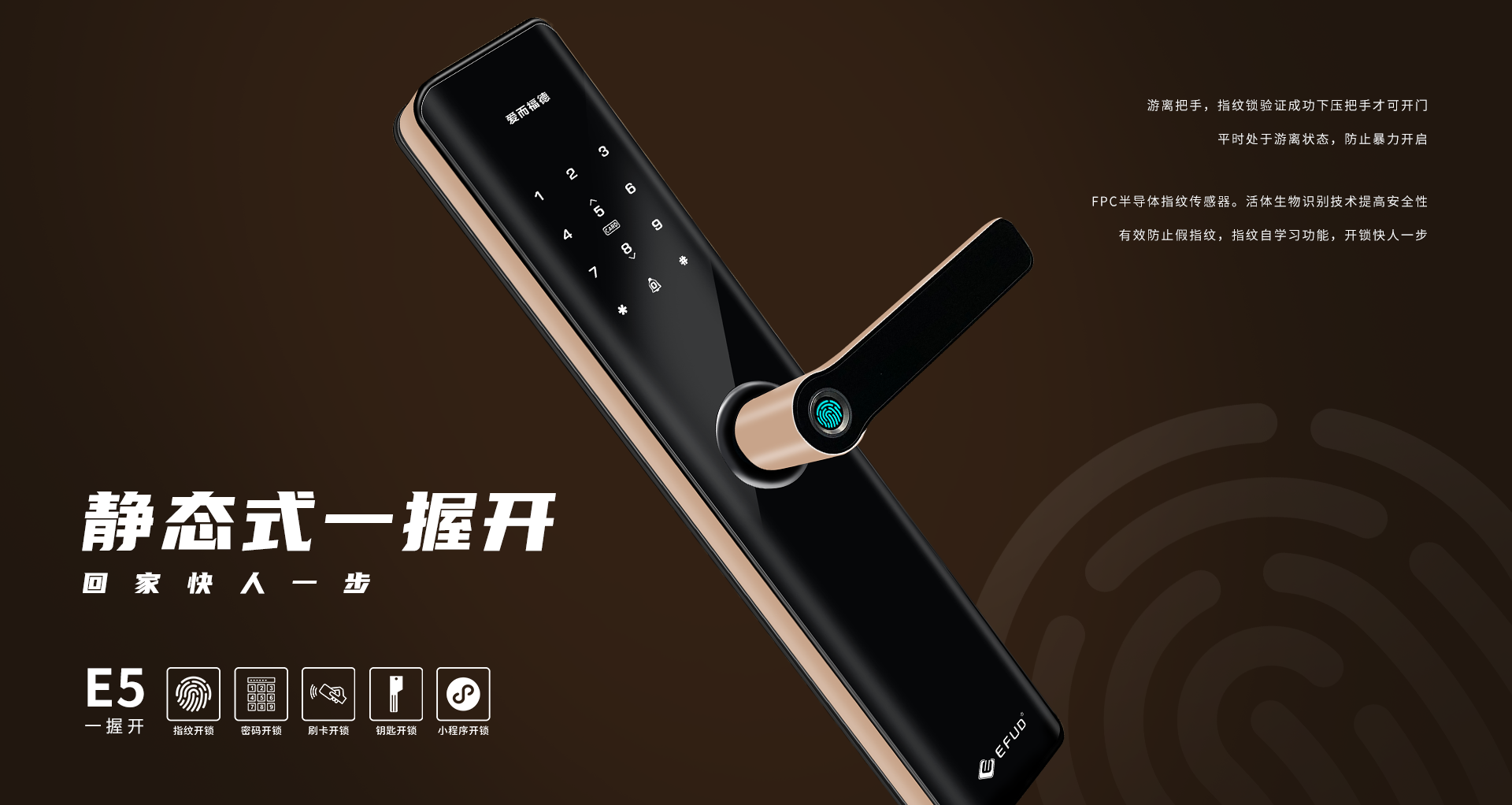 中山市愛而福德電子科技有限公司專注家用智能鎖25年,是一家集產(chǎn)品研發(fā)、制造、銷售、售后于一體全產(chǎn)業(yè)鏈的國家高新技術(shù)企業(yè)。公司擁有現(xiàn)代化生產(chǎn)基地8500平方米,具備35000把/月的生產(chǎn)規(guī)模及一支十多年專業(yè)的研發(fā)團隊,產(chǎn)品均擁有100%自主知識產(chǎn)權(quán)。公司一直秉承“創(chuàng)新智造,工匠精神”,為每一位用戶提供智能、便捷、安全的高品質(zhì)生活!